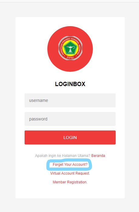 - Jika lupa paswoord NIRA klik “forget your account?” masukkan No NIRA dan Email aktif sesuai pendaftaraan keanggotaan
